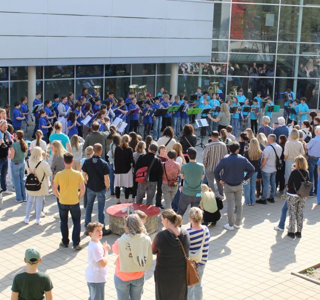 Als sich um 14 Uhr die Türen der Realschule öffneten, begrüßte die Schulband die ersten hereinströmenden Besucher in der kleinen Aula mit ihren fet…
