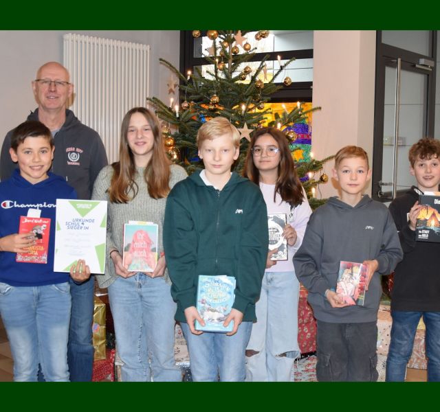 Erfolgreiche Vorleser und Vorleserinnen an der Georg-Hipp-Realschule Vier Jungs und zwei Mädchen aus den sechsten Klas…