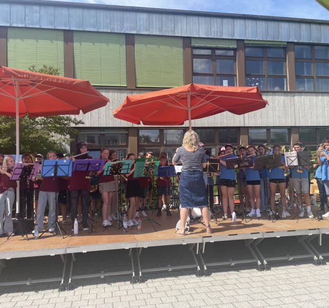 Mit Sambarhythmen von Herrn Köhler und Herrn Herrmann, Blasmusik der Bläserklasse 6b und schwungvollen Diabolowürfen w…