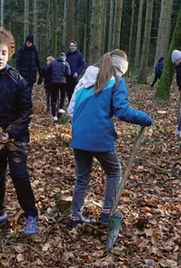 Ganz dem Beispiel von „Fridays for future“ folgend, war das Oberthema „Nachhaltigkeit“ der diesjährigen Projektpräsentation der 9. Klassen gewählt. Eine Dreiergruppe aus engagierten Mädchen der Klasse 9b hat sich im Zuge dessen mit dem Thema „Aufforsten“ beschäftigt. Ihre Aufgabe war es dazu einen Aktionstag zu veranstalten. Die drei Schülerinnen organisierten einen Tag im Wald am Kuglhof, wobei die Klasse mit dem Forstwirt Martin Fahn und Fachkräften von der Waldbauernvereinigung über 500 Rotbuchensetzlinge zur Aufforstung des Waldes pflanzen konnten. Am 06.02.2024 traf sich die Klasse zu Beginn des Schultages mit den beiden Begleitlehrkräften Frau Eschenbacher und Herrn Kneißl sowie dem Team der 9. Klasse in einem Klassenzimmer, um sich zu sammeln und dann geschlossen aufzubrechen. Mit dem Stadtbus ging es bis zur evangelischen Kirche, von dort machte sich die Gruppe dann zu Fuß auf den Weg zum Wald. Dort empfingen uns auch schon der Forstwirt Martin Fahn der Stadt Pfaffenhofen und drei Männer der Waldbauernvereinigung. Diese brachten die Schülerinnen und Schüler sowie Lehrkräfte zusammen mit ihren beiden Hunden zum Waldstück, das Herr Fahn schon vorbereitet hatte. Zuerst gab es noch eine kleine Einweisung, wie Setzlinge gepflanzt werden und wie vorzugehen ist. Dann durften sich die Kinder selbst in Zweierteams zusammenfinden und sich am Pflanzen versuchen. Anfangs war es noch ein wenig schwer, doch mit der Zeit und der grandiosen Unterstützung durch die Fachkräfte und dem Forstwirt hat es ganz gut funktioniert und die Schüler hatten großen Spaß bei der Pflanzaktion. Dem Aktionstag war auch eine Einführungsstunde zum Thema „Aufforsten – warum und wie?“ vorangegangen, was den Schülern schon einen kleinen Vorteil verschaffte. Gegen 11:05 Uhr machte sich die Gruppe wieder auf den Weg zurück zur Schule. Das Team der 9. Klässlerinnen war sehr zufrieden mit ihrer Aktion und bedankte sich bei der engagierten Klasse für die gute Mitarbeit und bei den Lehrkräften für die Unterstützung bei der Durchführung und Organisation.