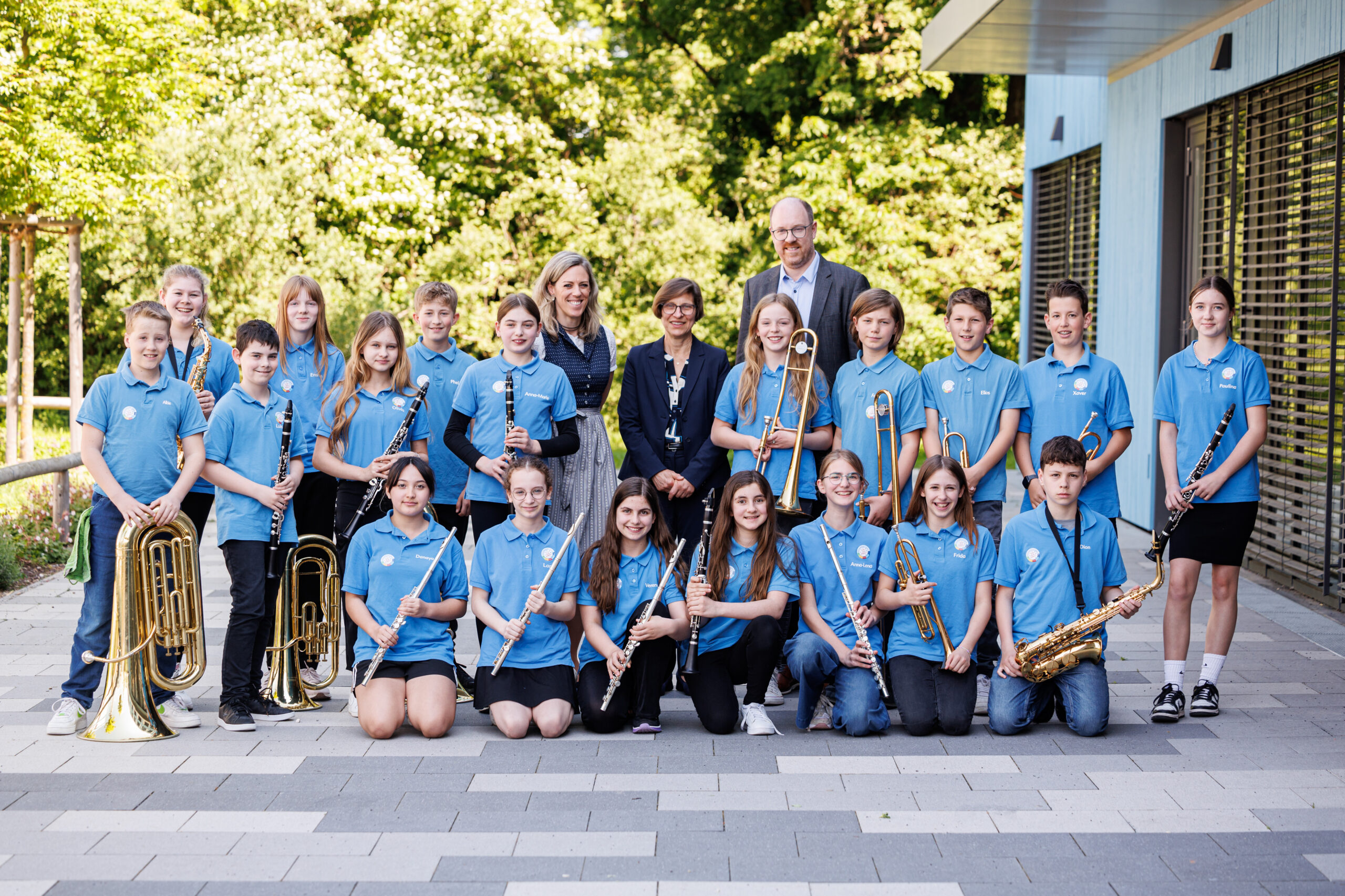 Am Montag, den 13.5.2024, wurde die Georg-Hipp-Realschule im Rahmen des musikpädagogischen Förderprogramms klasse.im.puls mit einer Zertifizierung für die Bläserklassen ausgezeichnet. Das Programm unter der Schirmherrschaft von Kultusministerin Anna Stolz findet in Kooperation mit dem Lehrstuhl für Musikpädagogik und -didaktik an der Friedrich-Alexander-Universität Erlangen-Nürnberg unter der Leitung von Herrn Prof. Dr. Johannes Hasselhorn statt. Die Zertifizierung einer Schule erfolgt nach einer dreijährigen erfolgreichen Projektteilnahme unter dem Nachweis kontinuierlicher musikalischer und pädagogischer Qualität. Eine sehr große Ehre wurde der Klasse 6b zuteil, welche als einzige eingeladene Musikklasse den Festakt an der Eduard-Spranger-Schule in München musikalisch umrahmen durfte.